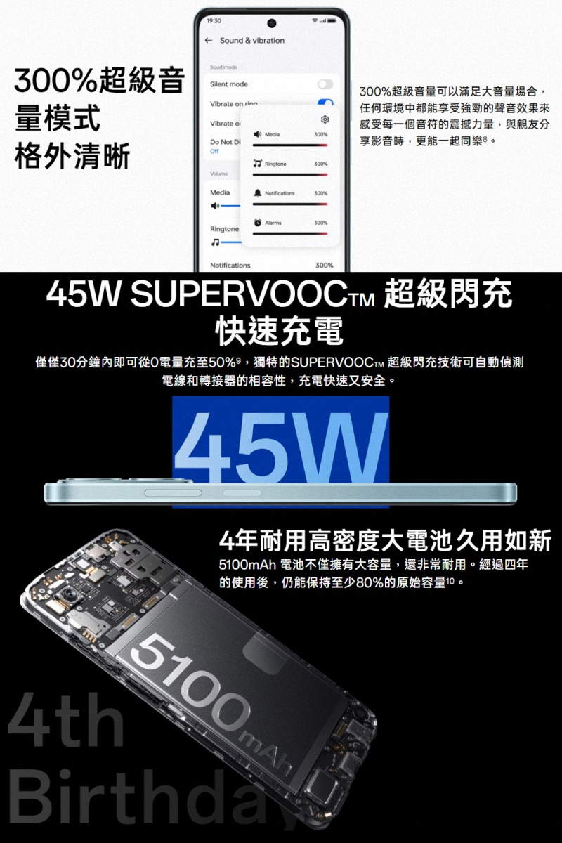 5100mAh、45W超級閃充